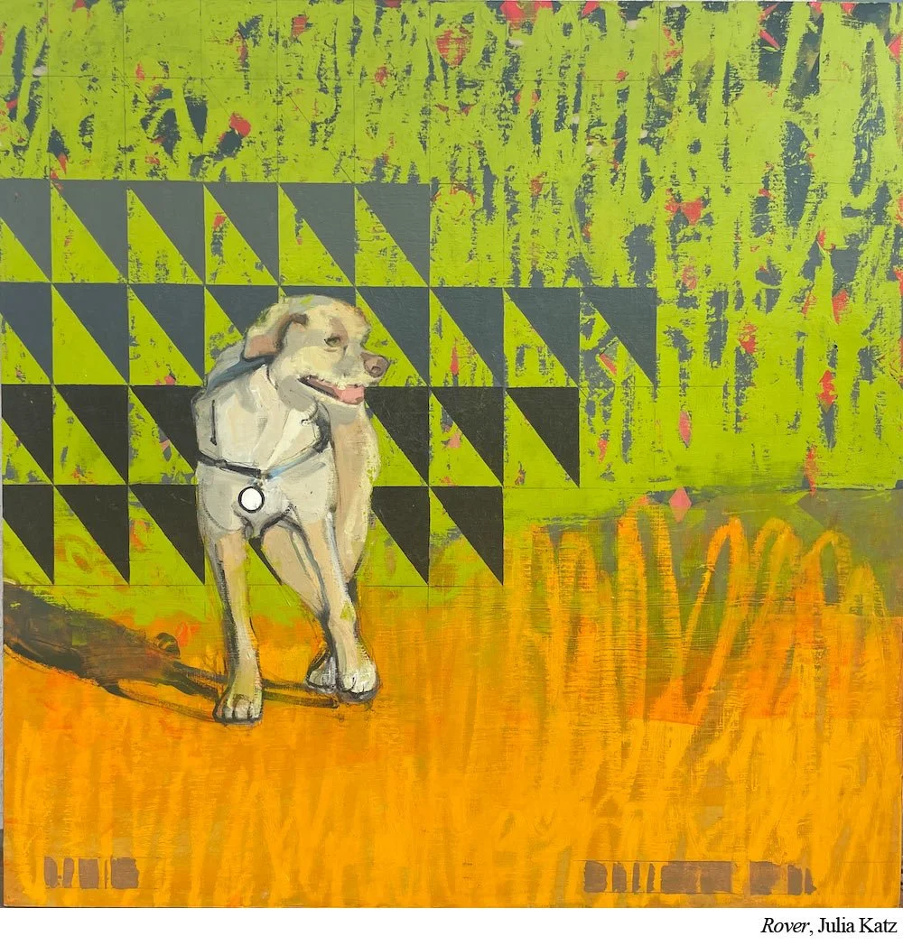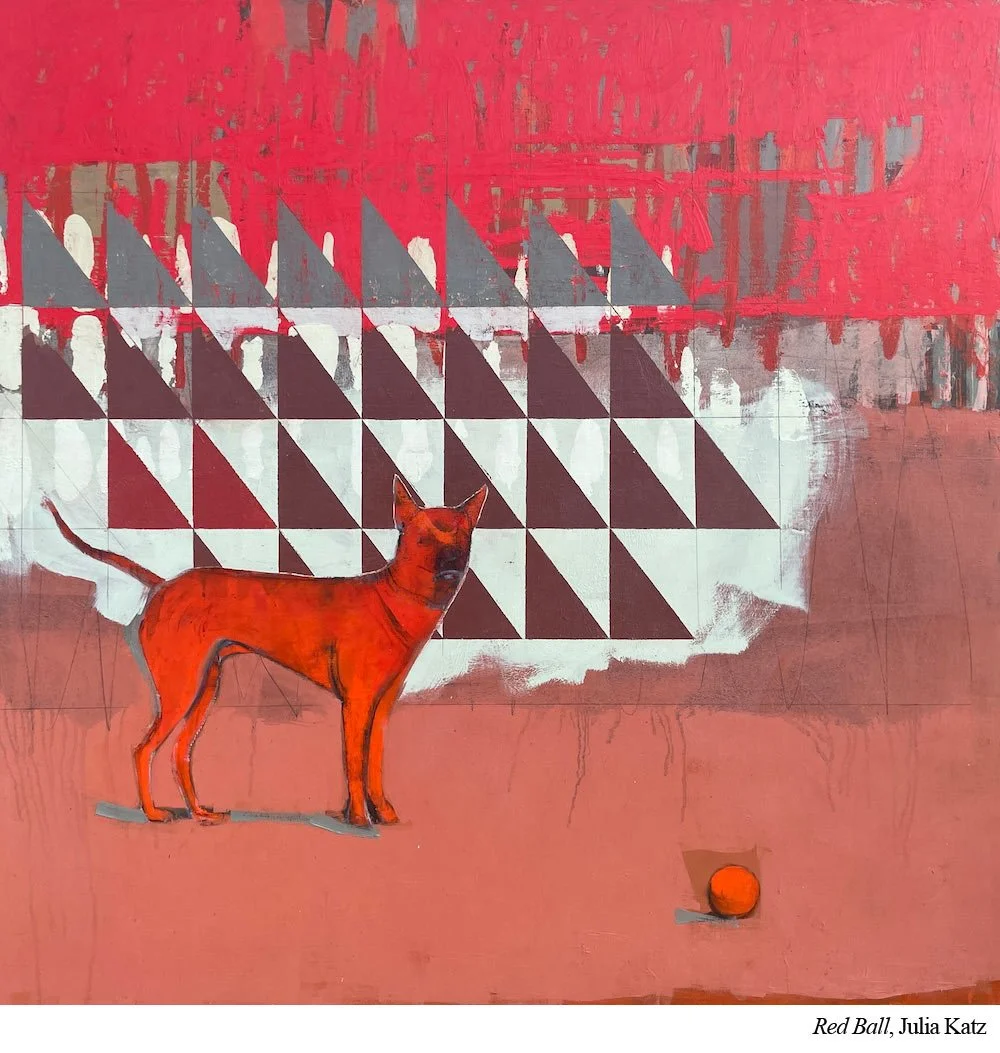 Katz knows the eye gravitates toward contrast, especially when a realistic figure appears inside a more abstract area.